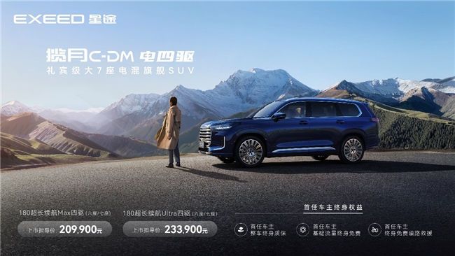 此次,星途旗舰车型礼宾级大7座电混旗舰SUV——星途揽月C-DM共推出180超长续航Max四驱、180超长续航Ultra四驱两个版本,均配有2+2+2的6座、2+3+2的7座可选。官方指导价为20.99万元-23.39万元。